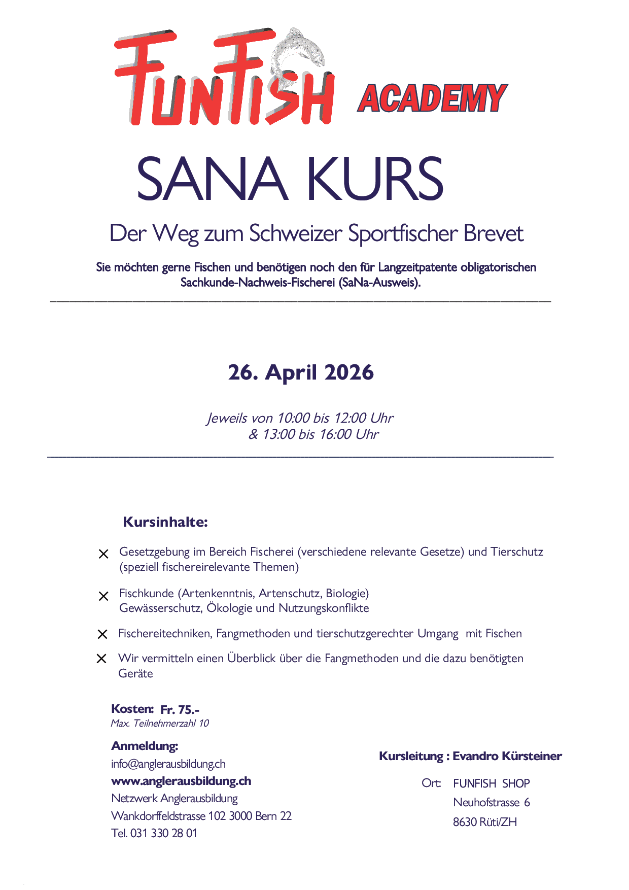 Anmeldung unter : www.anglerausbildung.ch
